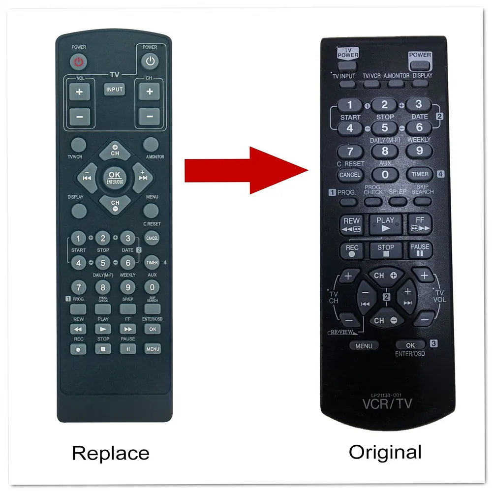 - Complete button set: Matches the original layout with all essential VCR controls for play, stop, record, rewind, fast forward, and menu access.
