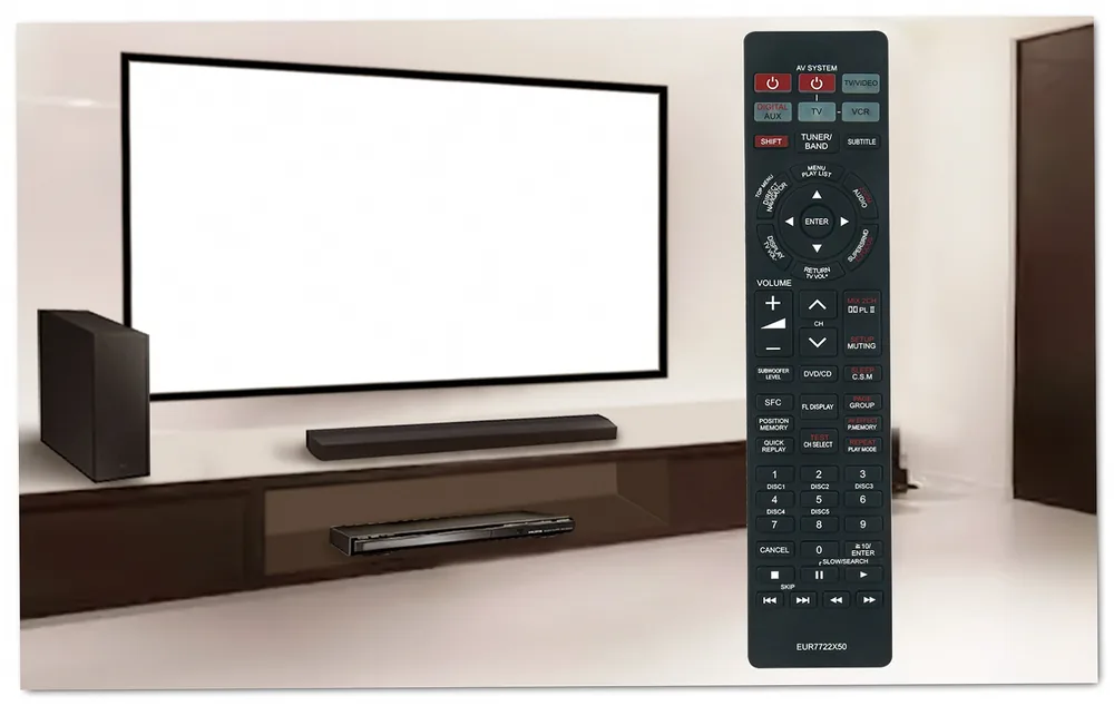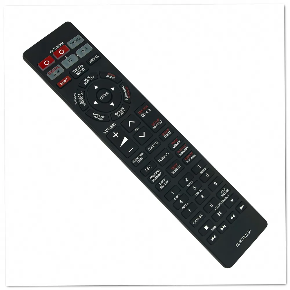 Compatible with 4 Panasonic models, the EUR7722X50 remote control delivers complete functionality for your DVD and Blu-ray home theater system. This replacement remote works seamlessly with the SC-HT920, SA-HT920, and HT920 systems, providing access to all playback, menu navigation, and audio settings. The familiar button layout ensures you can operate your equipment without relearning control locations.