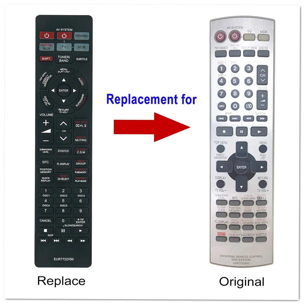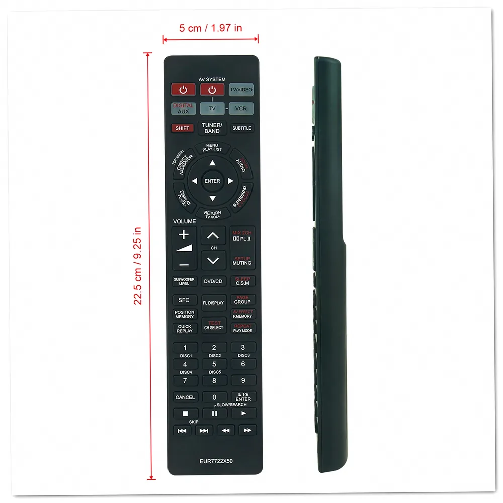 - Replacement remote: EUR7722X50 part number designed for Panasonic DVD and Blu-ray home theater systems with full button functionality.